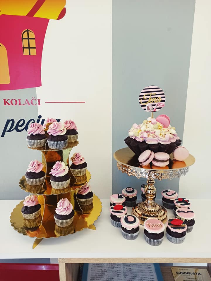 Torte, muffini, cake popsi, deserti u čašicama/košaricama, macaronsi, šarene krofne