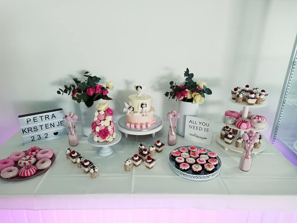 Torte, muffini, cake popsi, deserti u čašicama/košaricama, macaronsi, šarene krofne